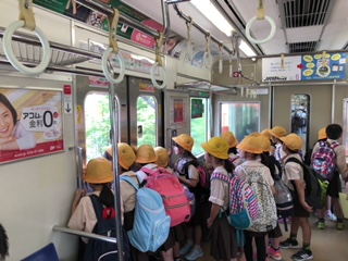 > 6月1日天候晴れ。今日は3年生の校外学習です。環状線に京橋より乗り天満で降りました。そのあとキッズプラザで班に分かれて、いろんな体験をしました。