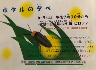 明日は鶴見小学校、東門前のホタル小屋に、大事に育てたホタルが淡い黄色い光を放ち、飛び交います。9日(土)7時開門、7時30分開式でおこないます。日が暮れての時間帯になりますが、都会でホタルを見る機会は少ないので、ぜひ見に来てください。