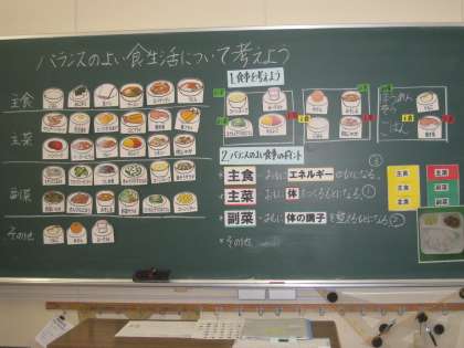 茨田小学校の佐近先生に来ていただき「バランスのよい食生活」について学習しました。自分が食べたい献立を考えた後、バランスがよくなる方法について学習し、改めて自分でバランスの良い献立を考えました。主食、主菜、副菜をバランスよく摂ることの大切さを学習することができました。