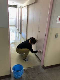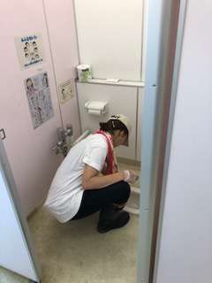 PTA体育緑化委員主催の校内清掃を行いました。「校内で特に汚れている箇所を掃除しますよ。」と申し出いただき、学校としては低学年が使うトイレの清掃をお願いしました。3号館の1階から4階のトイレをきれいにしていただきました。今の学校のトイレは床に水を流せないウェット式になっていて掃除は大変でした。また、室温が急上昇の時間帯だったのでほとばしる汗をぬぐいながら、丁寧にきれいにしていただきました。