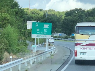 夏休み入ってはじめての土日。高速道路はもっと混んでいると思っていましたが、宝塚と西宮3キロ渋滞と出ていてゆっくりですが止まらず進み赤松Pに着きました。ここで途中休憩です。他の学校からも林間学習に向かうバスの休憩で、トイレは大混雑でした。