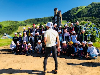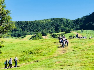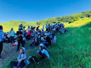 > 鉢伏高原モニュメント碑の前で集合写真を撮ったあと高丸山を目指して登ります。さあ、出発です。