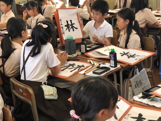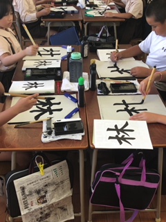 教材 林 の漢字を使い「左右の組み立て方 」の授業を行いました。へんとつくりの組み立て方を考えなんども練習し、作品を仕上げました。日本の伝統芸術の一つの書道。芸術の秋にぴったりです。