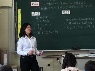 > 4年2組で2時間目社会科「なくそう怖い火事」の学習をしました。補助教材「わたしたちの大阪」を使って地域に即した防災の授業となりました。調べる・考える もし火事がが起こった時、どこに、どのように連絡し、またその順序はどのようにするべきか皆で活発に意見を出し合いまとめました。