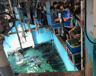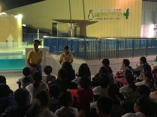 18:20 志摩マリンランドの夜間観覧に行きました。ペンギンタッチと巨大水槽餌やり体験を特別に設定していただきました。