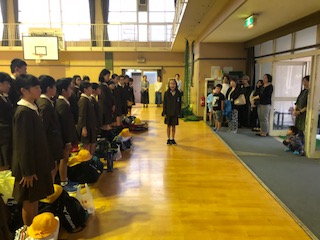 17:00 6年生は学校に戻ってきました。1泊2日の修学旅行で大きな成果を得ました。志摩スペイン村では一時雨に降られましたが、天候にも恵まれ、パスでの行動のため渋滞が気がかりでしたかとてもスムーズに行きました。児童代表の挨拶では「この経験を生かし、あと残された6年生の期間、仲間とともに頑張ります。」と今後の成長を約束してくれました。全員が参加できたこと、5分前行動ができたこと、仲間のことしっかり考えられたこと。これからの生活の、ブラスにしてください。
