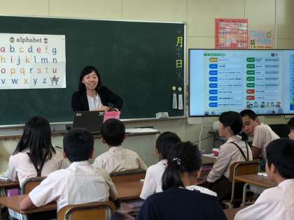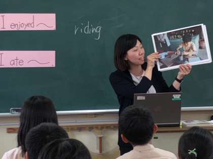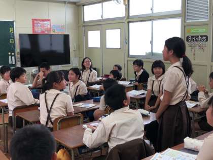 3時間目6年生2組は外国語活動の授業を行いました。過去の表し方を使って、修学旅行で行った場所や食べたもの、楽しんだことやその感想を伝える内容でした。「I went to 〜」、「I enjoyed 〜」「 I ate〜 」「 It was〜」を使った会話をペアになって発表し合いました。