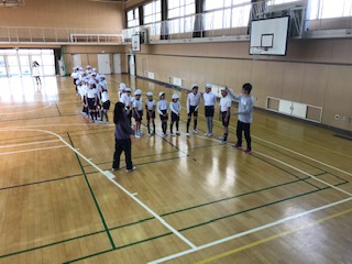 1月23日(水)の2時間目に、ダブルダッチの出前授業をしました。講師は、二人の大学生の方々で、跳ぶことに必要な場所を十分にほぐしました。