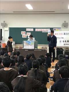 本日、大阪府中央少年サポートセンターから2人の職員に来ていただき、3時間目に多目的室で非行防止・犯罪被害防止教室を行いました。