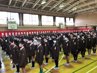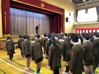 平成30年度の修了式を行いました。先日の第62回卒業式は卒業生、在校生ともに素晴らしい姿勢で臨むことができ、感動の2時間でした。今日の修了式も、同じく整然とそれぞれがこの1年の成果とともに堂々と式に臨んでいました。短い春休みですが、次の学年での準備です。修了式が終わった後、1年生は次に迎える入学生の入学式での出し物の準備をしていました。