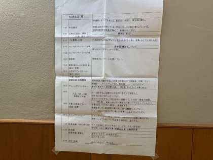 昼食後、入所式、避難訓練と行い、現在は、グリーンアドベンチャーというプログラムで山の中を班ごとに散策しています。みんな楽しんでいます。