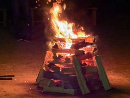 夕食も美味しくいただき、今はキャンプファイヤーで盛り上がっています。みんな元気いっぱい楽しんでいます。