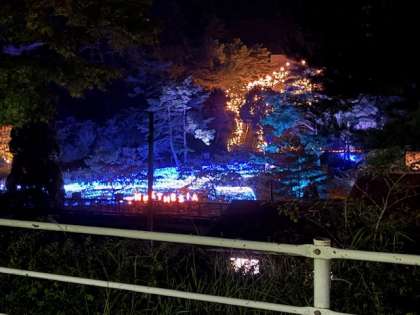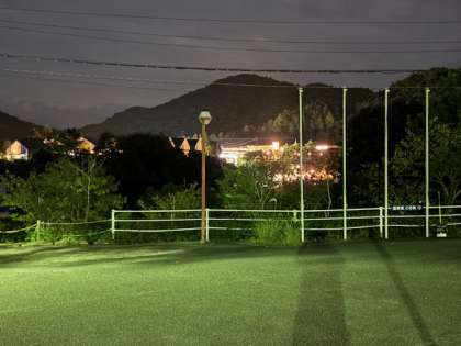 夕食の準備、後片付けもすっかりと慣れ予定の時間より早くスケジュールをこなしています。もうすぐ、虫の音を聞きながらナイトハイクに出かけます。下の写真にあるイルミネーション付近を歩きます。