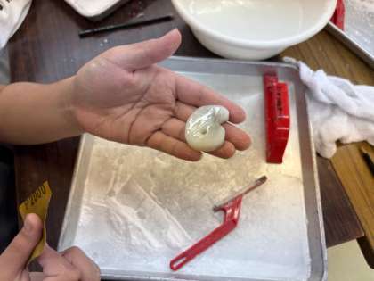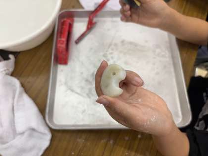 勾玉作りも終わりに近づいてきました。みんな一生懸命に取り組んでいました。林間学習における色々な活動は、本校キャッチフレーズ(いい汗、いい顔、いい心)そのものだった気がします。