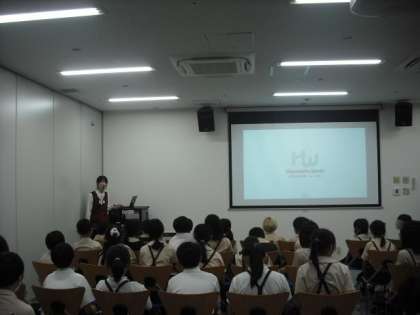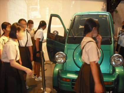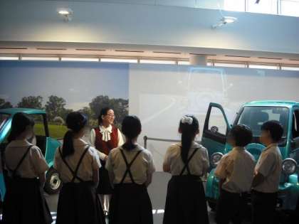 写真1,2 実際の自動車を使って説明を受けました。(みんな真剣に聞いていました)