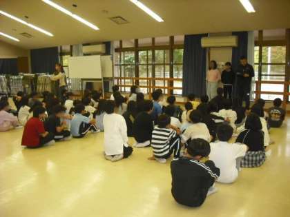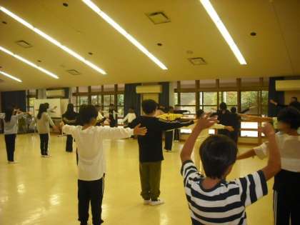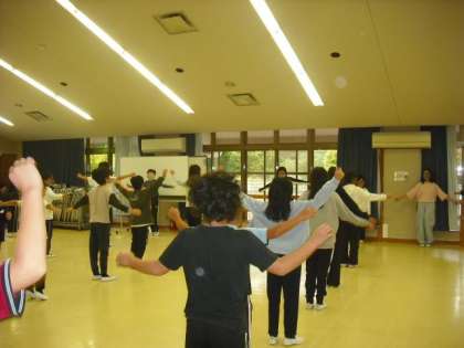 写真1、写真2 眠気をラジオ体操で吹き飛ばしました。