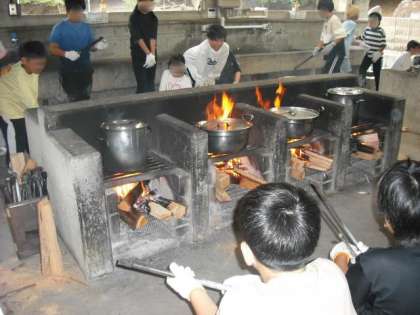 写真1 火の勢いが大きくなりご飯とカレーが炊かれます。