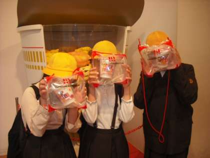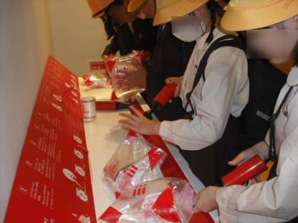 写真1〜3 出来上がったヌードルを専用バック(空気を注入してヌードルがつぶれない工夫されたもの)に詰めて完成です。