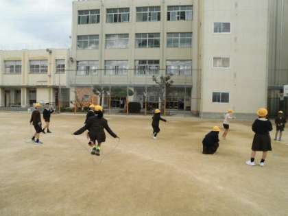 お昼休みに、1,3,5年生がぴょんぴょんタイム(縄跳びで自分の好きな飛び方ごとに集まって思い思いに縄跳びを練習していました。気温は低かったですがみんな元気に寒さを吹き飛ばして頑張っていました。