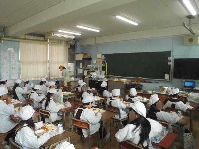 今日の給食時間は、コッペパンを主役にした洋風のメニューに。