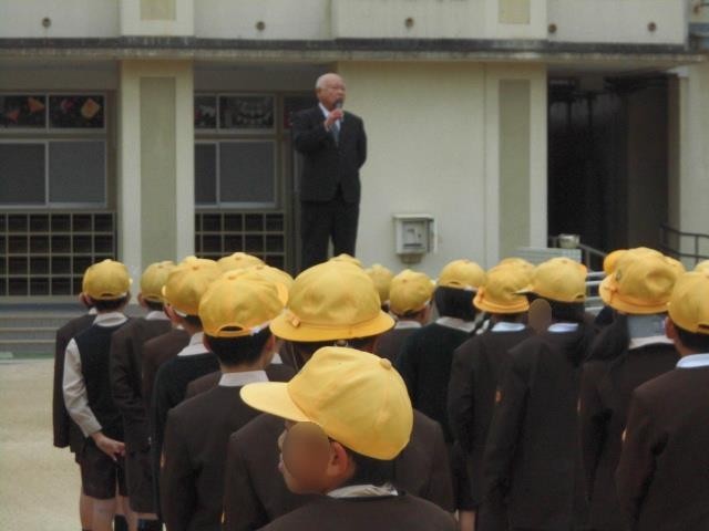 その後、代表委員のみんなから「今週はあいさつ運動を頑張ります!心のこもったあいさつをしましょう」と呼びかけがありました。