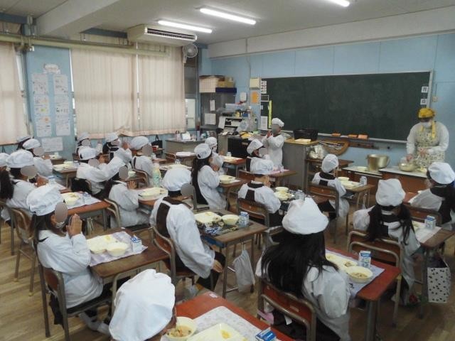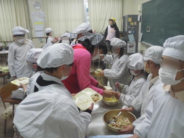 今週も始まりました。今日は、冬にぴったりの「かす汁」が登場しました。酒粕の香りに「大人の味だ!」と言う子もいれば、「体が温まる~」と喜んで食べる子もいて、教室は賑やかでした。