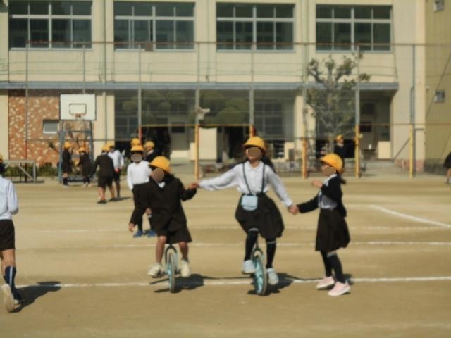 久しぶりのぽかぽか陽気に誘われて、バスケットボールで汗を流す子、一輪車で元気に遊ぶ子、そして日向ぼっこをしながらお友達と楽しそうにおしゃべりする子など、思い思いの時間を過ごしていました。