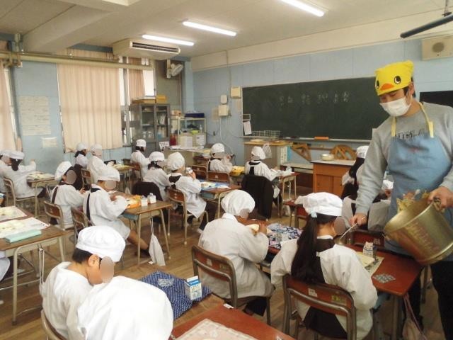 今日は子どもたちが大好きな「ハヤシライス」でした。とろとろのルーがごはんに絡んで、あっという間に完食する子が多かったようです。「きゅうりのバジル風味サラダ」と、甘じょっぱい「いもけんぴフィッシュ」も良いアクセントになっていました。