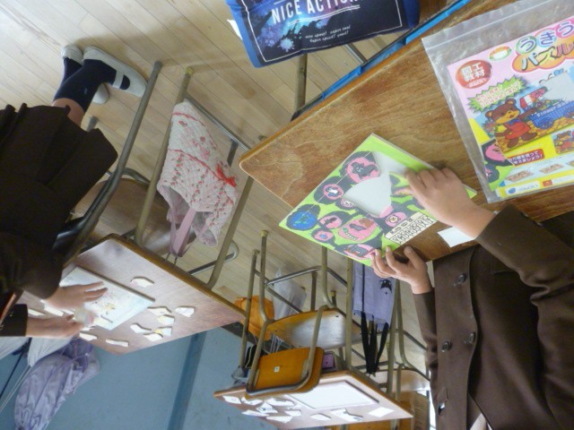 2月13日(金) 【授業の様子③】5年生の図工室が、手作りパズル会場に!