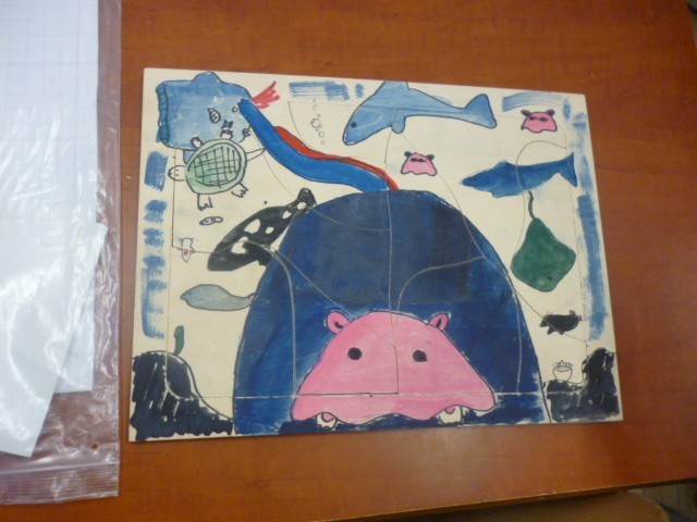 【授業の様子】5年生の図工室が、手作りパズル会場に!