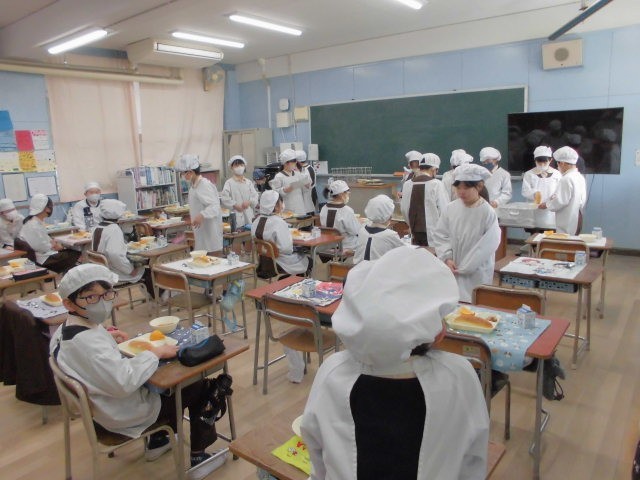 月曜日は少し体が重いかな…と思いきや、今日の給食を見てみんな元気復活!人気の「おさつパン」の甘みと、おかずの「豚肉とれんこんのオイスターソース焼き」のシャキシャキ感が最高でした。そして食後には、今が旬の「デコポン」。とってもジューシーで、お教室が爽やかな香りに包まれました。