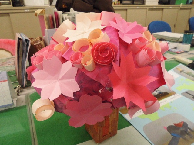 いただいたのは、色とりどりの紙で一生懸命作ってくれた「手作りの花束」。