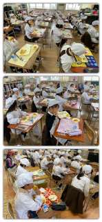 今日の献立は、 コッペパン、 ツナポテトオムレツ(ケチャップ)、 スープ、 白桃...