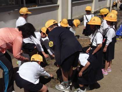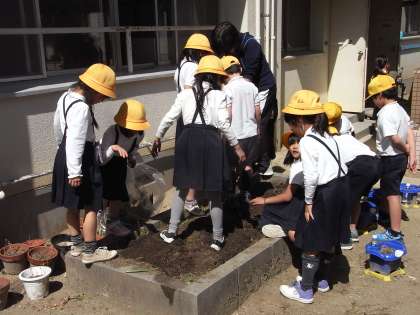 5月8日(水)、1年生と2年生が学習園をきれいにしました。雑草を抜いて、土を耕して、・・・。さあ、次はどんな植物をうえるのかな。