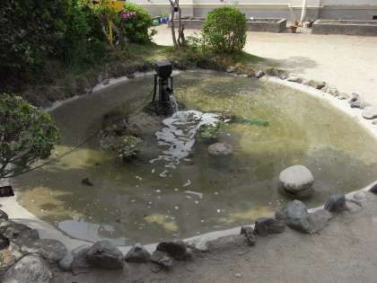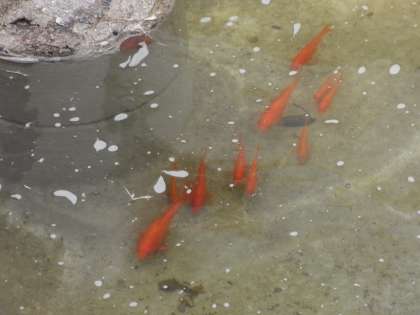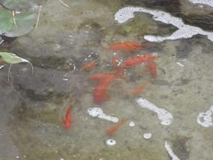 中庭の池の補修が終わり、きれいになりました。金魚も気持ちよさそうに泳いでいます。