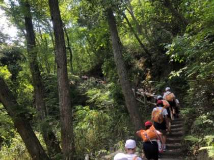 険しい山道もありましたが、お互いに励まし合って全員が頂上まで行くことができました。