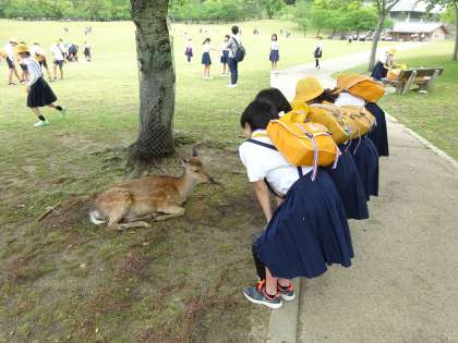 5月21日(火)6年生は奈良公園へ遠足に行きました。社会科で学習する東大寺の大仏を見学しました。奈良公園内の鹿にもびっくりする児童もいました。その後、お弁当やおやつを食べました。