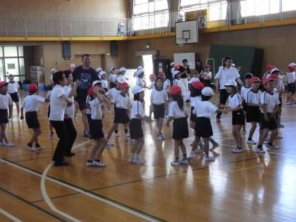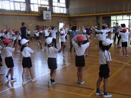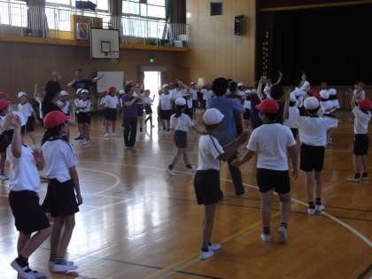 6月3日(月)、3年生と4年生が今津連合女性部の方から民踊を教えていただきました。とてもノリの良い「よさこい 総踊り うらじゃ」をはじめとして、「鶴見音頭」「河内音頭」「炭坑節」など、見よう見まねで踊りながらもマスターしていきました。