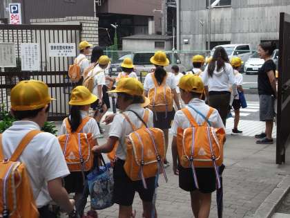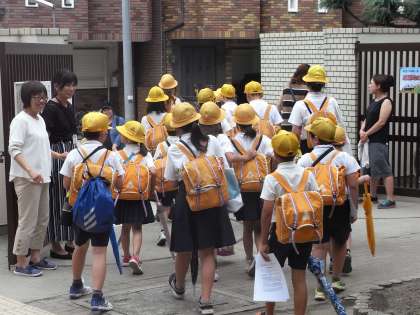 話し合い終了後、担当の教員や世話役の方の引率の下、集団登校の集合地点まで集団下校をしました。