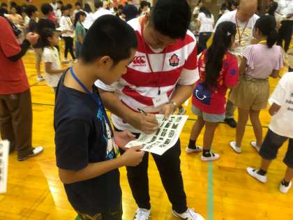 学校で学んだ英語を実際に使ってコミュニケーションの楽しさを体験したり、ダンスをしたりしました。
