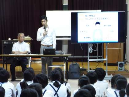 8月27日(火)、5年生が「スマホ・人権教育」として、NTTドコモの方と法務局人権教育委員の方から「スマホの正しい使い方」について教えていただきました。