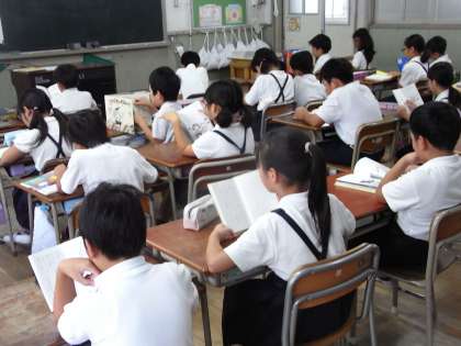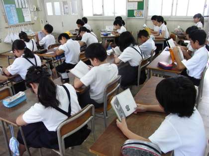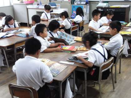 毎週水曜日の朝は、全校一斉の「読書タイム」の時間です。心地よいBGMが流れる中、自分の読みたい本をじっくりと読んでいきます。読書好きの子どもたちが増えることを願っています。