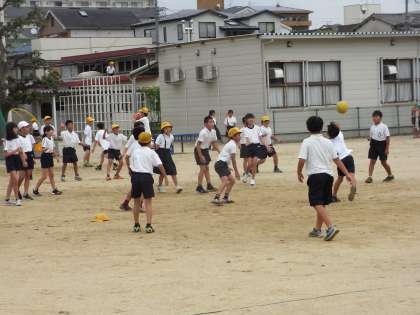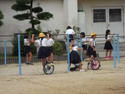 8月29日(木)。雨が続き、なかなか運動場で遊べませんでしたが、今日は運動場へ出て、ドッジボールや一輪車、遊具などで、思いっきり遊びました。