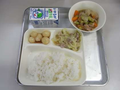 9月11日(水)、今日の給食には、鶏肉とさといもの煮物と、みたらし団子がでました。