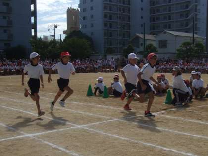 団体演技「Smile together‼」では、難しい振り付けや移動がありましたが、元気いっぱい笑顔いっぱいで踊りました。