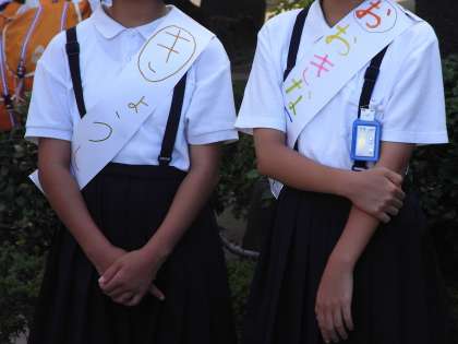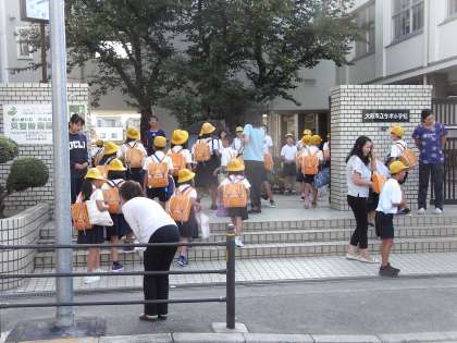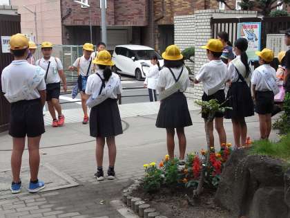 10月1日(火)から4日(金)までの4日間は、児童会主催のあいさつ週間でした。登校時間に、代表委員が「あかるいこえで」「いわれるまえに」「おおきなこえで」などのたすきをかけて玄関に立ち、気持ちの良いあいさつをしながら全校児童を迎えました。