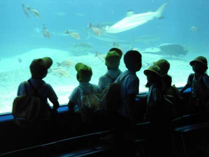 10月4日(金)、3年生は海遊館へ遠足に行きました。館内には太平洋を模した広大な太平洋水槽を中心にたくさんの展示水槽が備わっていました。世界で一番大きな魚ジンベイザメをはじめとして約620種、30,000点の生き物が展示されているそうです。