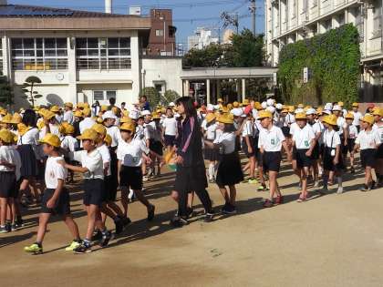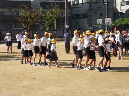 10月7日(月)、今日の児童集会は「じゃんけん列車」でした。じゃんけんをして、負けた人は勝った人の後ろにつながっていくゲームです。さて、じゃんけん列車には、何人位の人がつながったのかな。