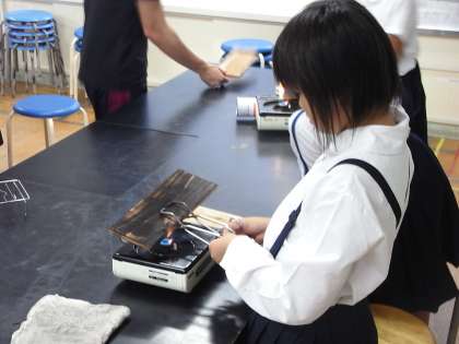 現在、樹木にかかっているネームプレートは、昨年度栽培委員会の児童が焼き板をして作りました。今年の栽培委員会は、学年ごとに振り分けられている花壇のネームプレートを作る予定です。10月8日(火)、まずはガスコンロを使って焼き板づくりをしました。完成が楽しみです。