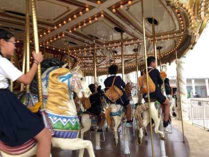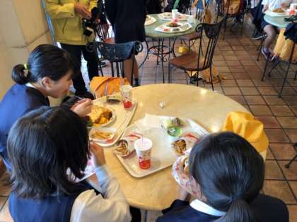 先に昼ごはんを食べるグループ、まずは乗り物に乗るグループ、それぞれに満喫しています。